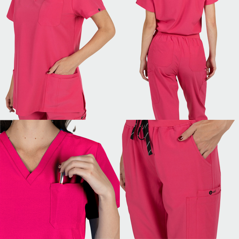Този комплект се отличава с комфортен и модерен вид, благодарение на свежите цветове и ефирната материя, от която е произведен. Подходящ е за ежедневна работа на лекари, медицински сестри, зъболекари, фармацевти, ветеринари, медицински персонал, работници и служители в естетични и козметични центрове.