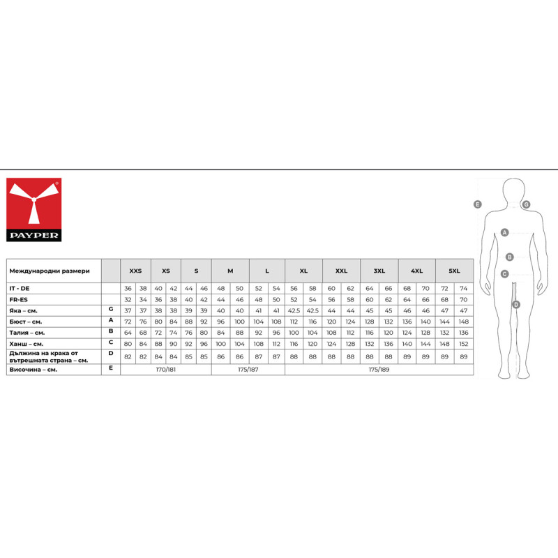 Размери - XS - 5XL