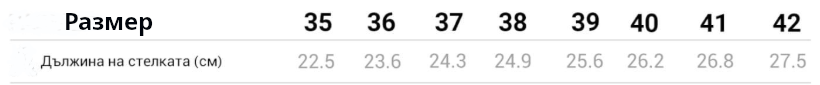 СТЕЛКА: естествена кожа с анатомична подметка и мека гел стелка
